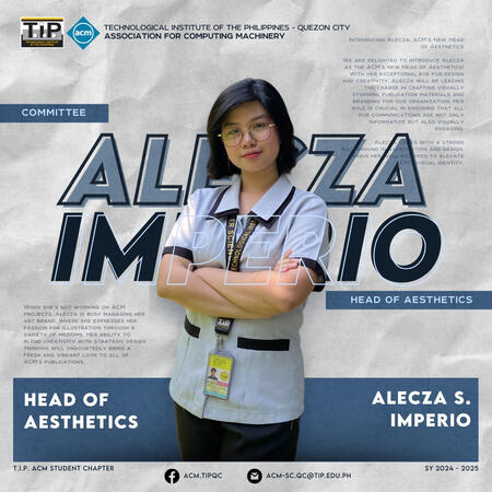 As Head of Aesthetics for the T.I.P. ACM Student Chapter, I crafted creative marketing strategies and engaging posts that kept the organization lively. I managed our Facebook page and ensured our online presence resonated well with the fellow students. I also designed and manufactured the club merchandise, and other cool products.